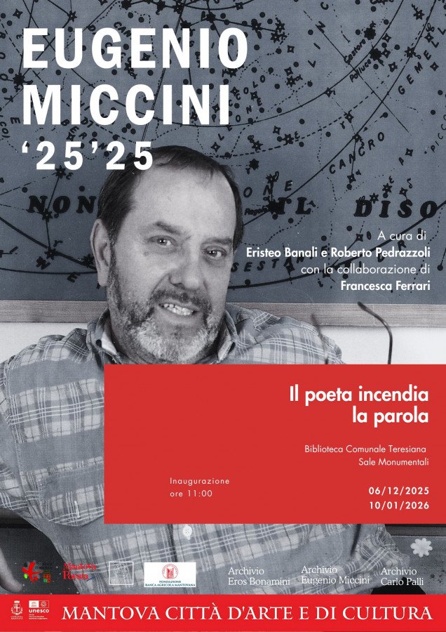 Da sabato 6 dicembre fino al 10 gennaio 2026 , nelle Sale Monumentali della Biblioteca Comunale Teresiana, e' visibitabile un secondo percorso espositivo monografico, dedicato all’opera di Eugenio Miccini, intitolato “Eugenio Miccini. Il poeta incendia la parola”