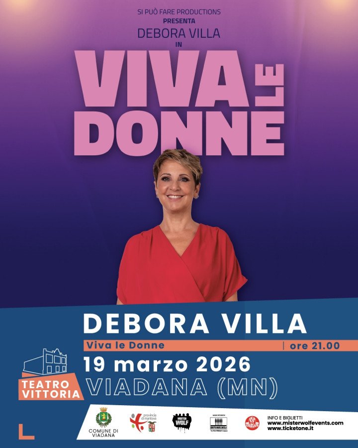 Debora Villa in Viva le DonneParafrasando il titolo del più famoso "Donne che corrono coi lupi" della scrittrice Pinkola Estés, “Viva le donne” è il nuovo spettacolo comico di Debora Villa: un viaggio ironico e tagliente attraverso la storia della misoginia, dai miti antichi alla società di oggi. Tra risate e riflessioni, un monologo brillante che smonta stereotipi e lancia un messaggio forte contro la violenza di genere.