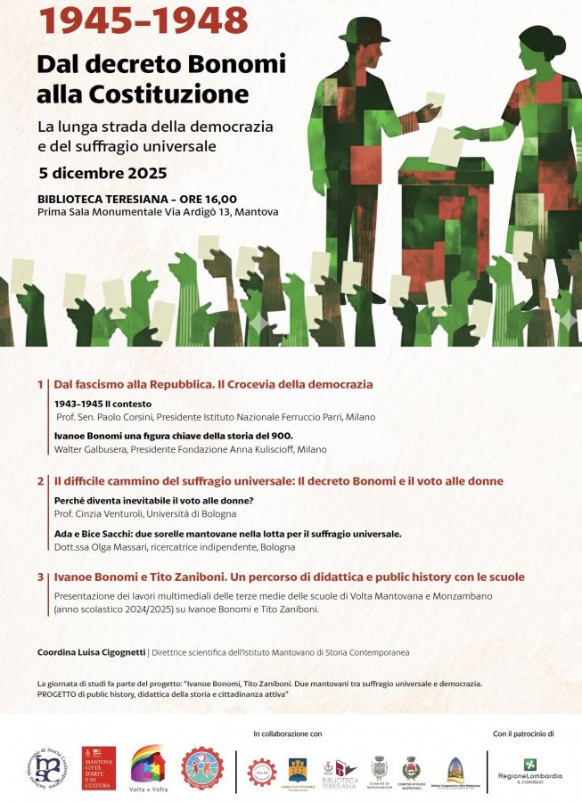 L'incontro suddiviso in tre parti é coordinato dalla direttrice scientifica dell'Istituto Mantovano di Storia Contemporanea Luisa Cigognetti e prevede l'intervento: