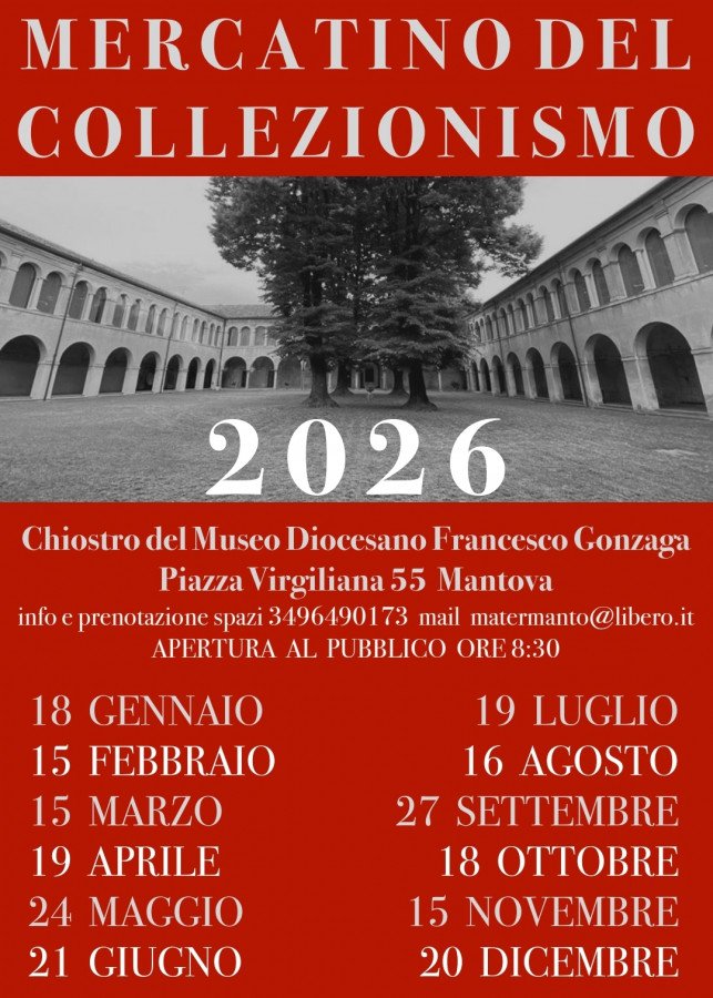 DiocesanoNella prestigiosa sede del Museo Diocesano di Mantova, al coperto sotto il chiostro che circonda un ampio giardino interno, dalle ore 8.30 alle 18.00 circa si svolge il mercatino di antiquariato, modernariato e collezionismo di qualità.